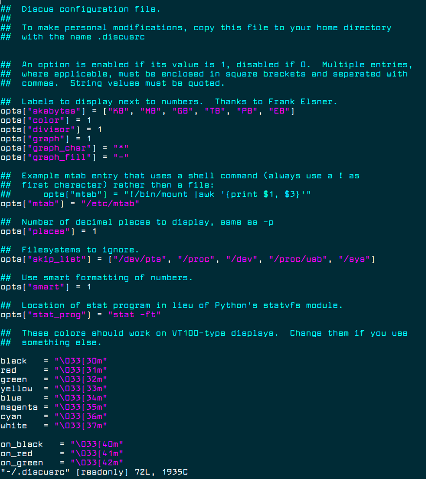 最后但并非最不重要的一点是,如果您想根据自己的喜好配置它,请将其主配置文件/etc/discusrc复制到~/.discusrc,如图所示。