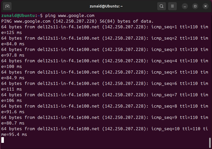 您可以通过传递主机名(最好是 URL 或 IP 地址)来使用 ping 命令,如下所示:
