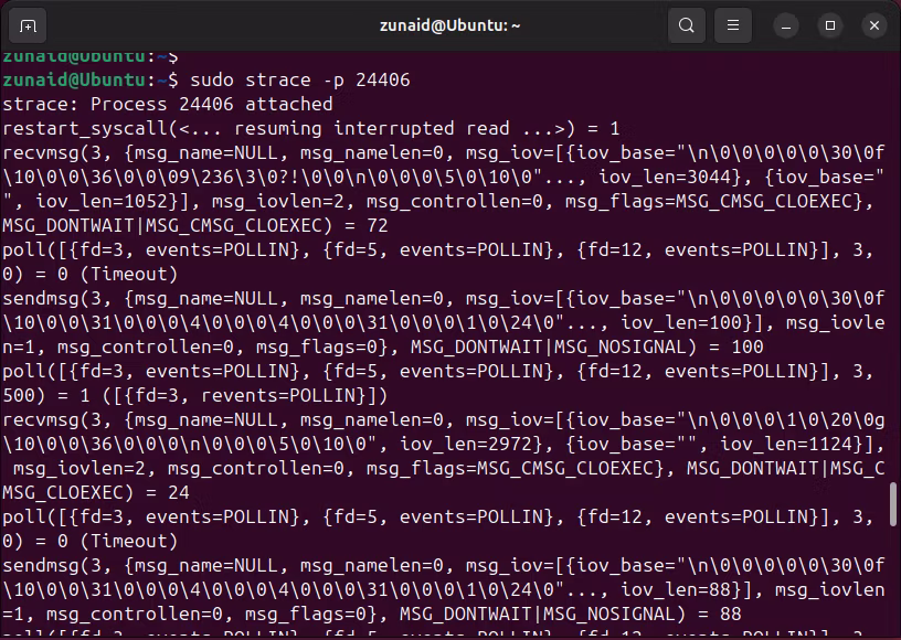 如果某个程序恰好挂起,而您找不到原因,则可以跟踪该程序正在进行的系统调用并揭示其卡住的原因。