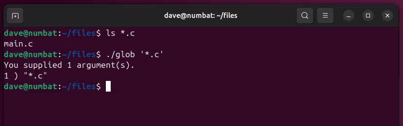 我将其保存为名为 glob.c 的文件,并使用以下命令进行编译: