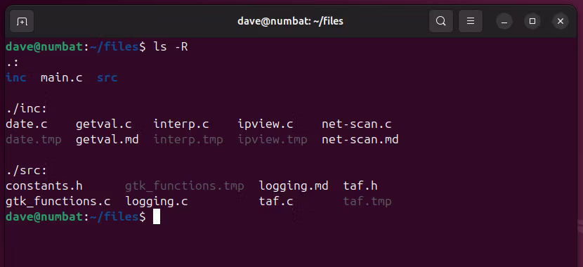 这就像我们大多数人所期望的那样。现在我们将做完全相同的事情,但这次当前目录中的文件不是文本文件,而是 C 文件。