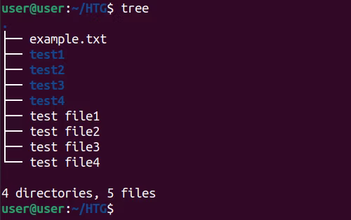 • “tree”命令递归地显示整个目录结构,并在最后总结文件计数。添加“-a”选项也会显示隐藏文件。