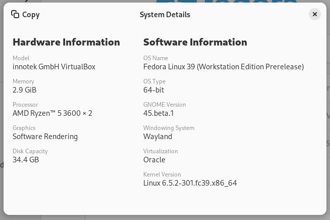 以防万一这是由于我使用的虚拟化软件 VirtualBox 的改进所致,我加载了 Fedora 38 虚拟机进行比较。这不是我的想象,Fedora 39 被赋予了一些高辛烷值、速度更快的果汁。 Fedora 从来都不是低能的,但用户可以享受 Fedora 39 带来的乐趣。