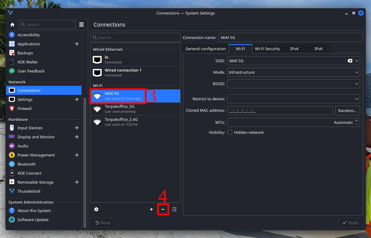 5. 如何删除 Kubuntu 和 Manjaro (KDE) 中的 Wi-Fi 设置