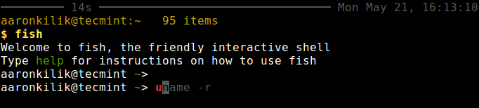 并且fish会自动建议完整的命令。如果自动建议的命令是您想要运行的命令,请使用向右箭头键选择它并运行它。