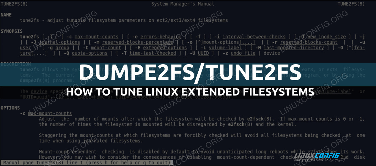 实用程序,可以获得包含上面观察到的几乎所有信息的输出。然而,后者的主要用途是调整文件系统参数。我们将在下一节中看到其用法的一些示例。