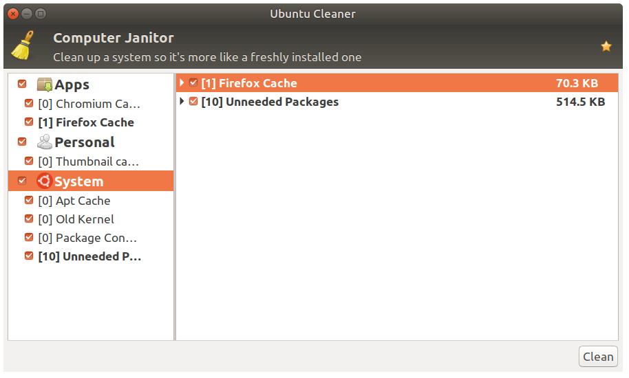 它还删除 APT 缓存、缩略图缓存、未使用的软件包、旧内核以及旧安装程序。这样,它可以保持系统干净并帮助您重新获得一些磁盘空间。