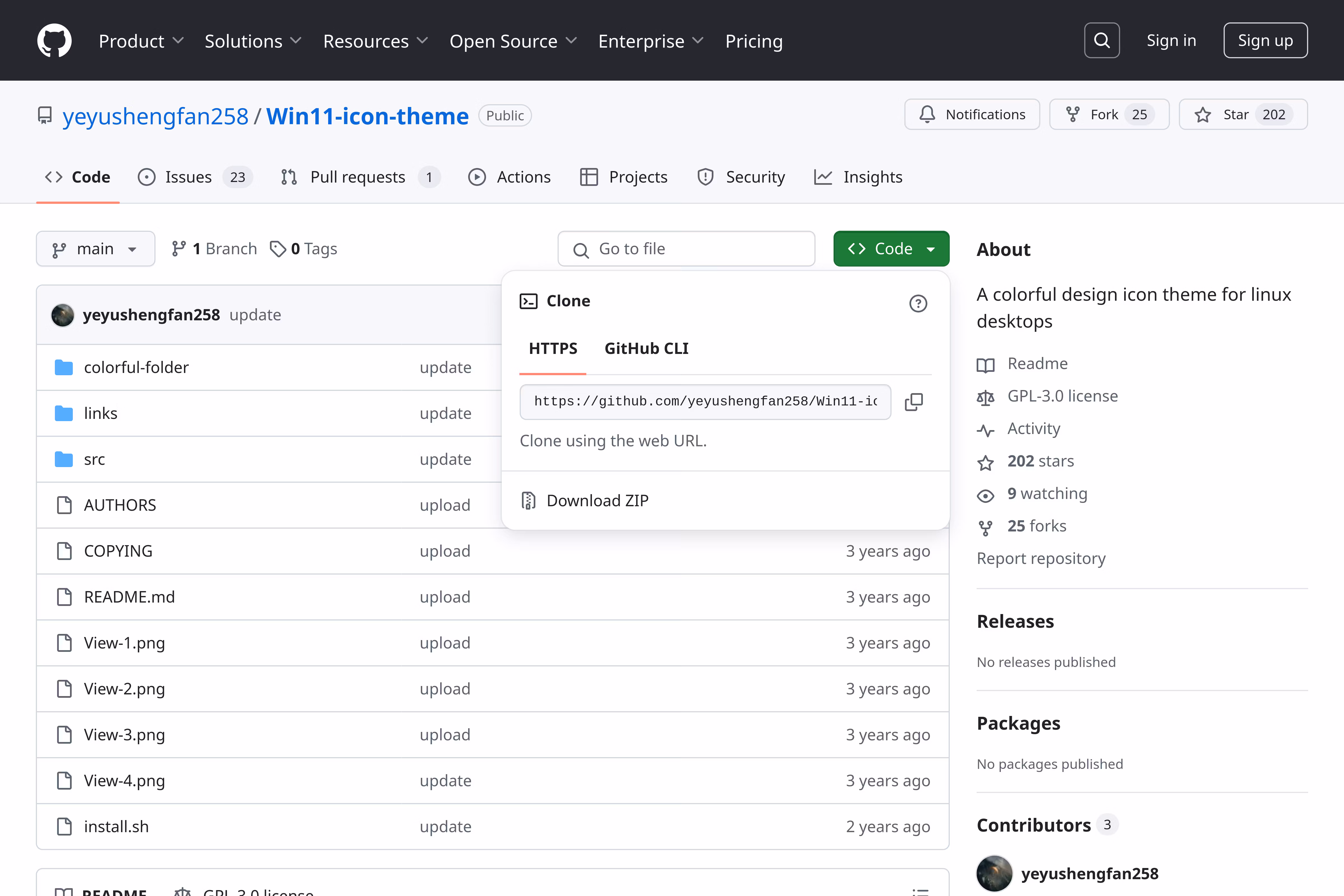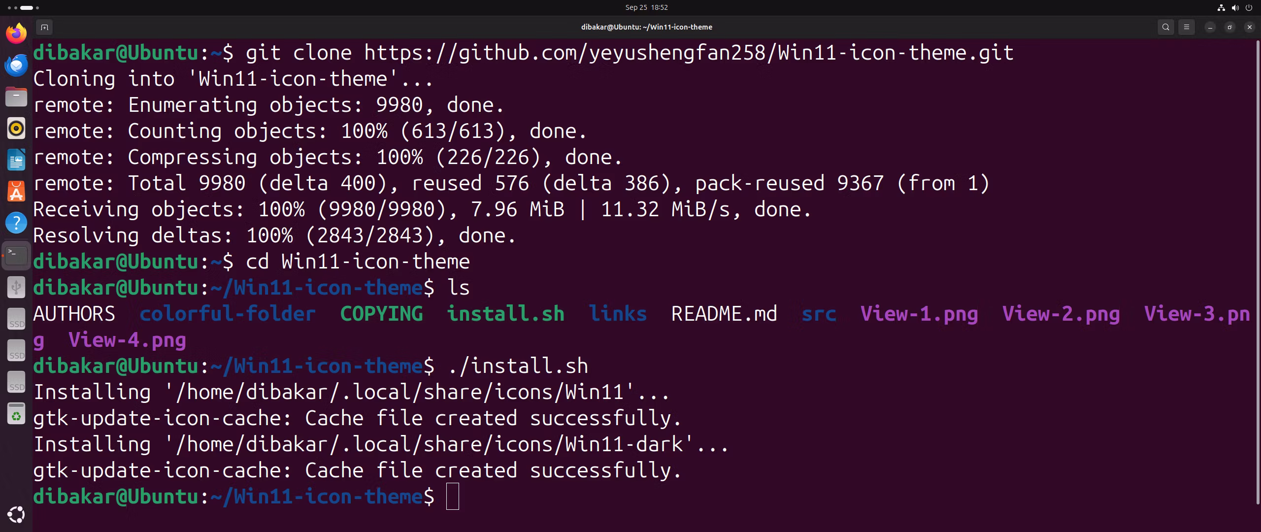 git clone https://github.com/yeyushengfan258/Win11-icon-theme.git
