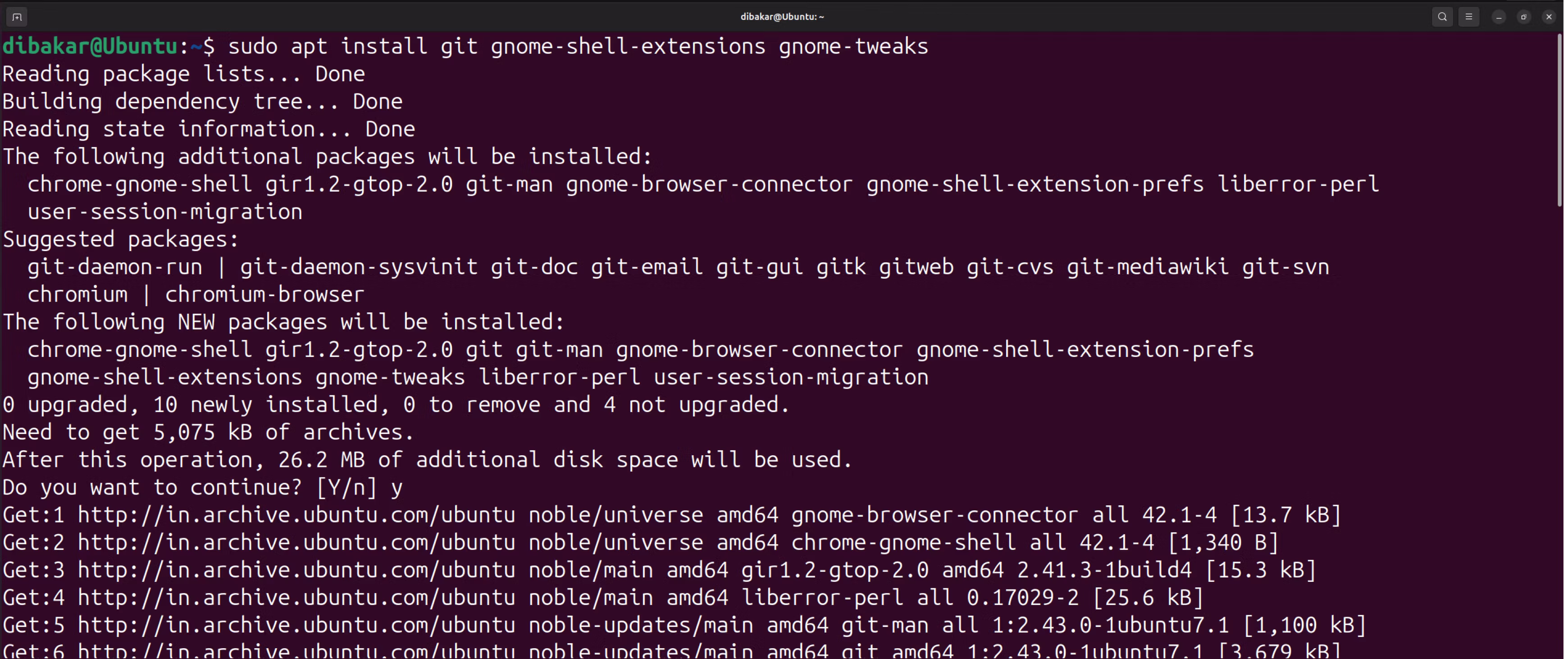 sudo apt install git gnome-shell-extensions gnome-tweaks