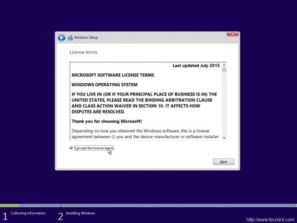 6.哦,是的许可协议。勾选“我接受许可条款”,然后单击“下一步”。