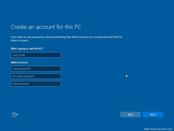 17. 安装程序要我创建一个帐户。因此,我输入用户名并单击“下一步”,我期待一条错误消息,要求我输入密码。