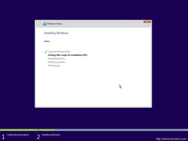 9. 安装程序开始复制文件、准备安装文件、安装功能、安装更新并完成。如果安装程序能够显示有关其所采取的操作的详细输出,那就更好了。