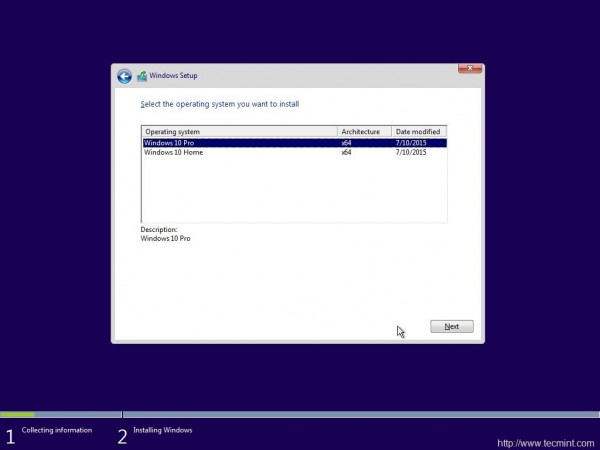 5. 从列出的操作系统中进行选择。我选择了“Windows 10 Pro”。