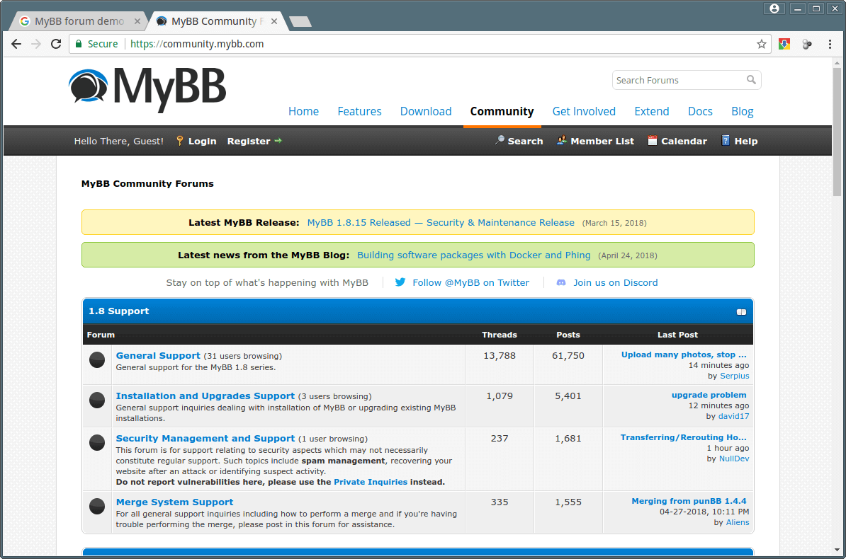 MyBB是一款免费开源、简单易用、直观但功能强大、效率极高的论坛软件。它是一个面向讨论的应用程序,支持:用户配置文件、私人消息、声誉、警告、日历和事件、用户升级、审核等等。