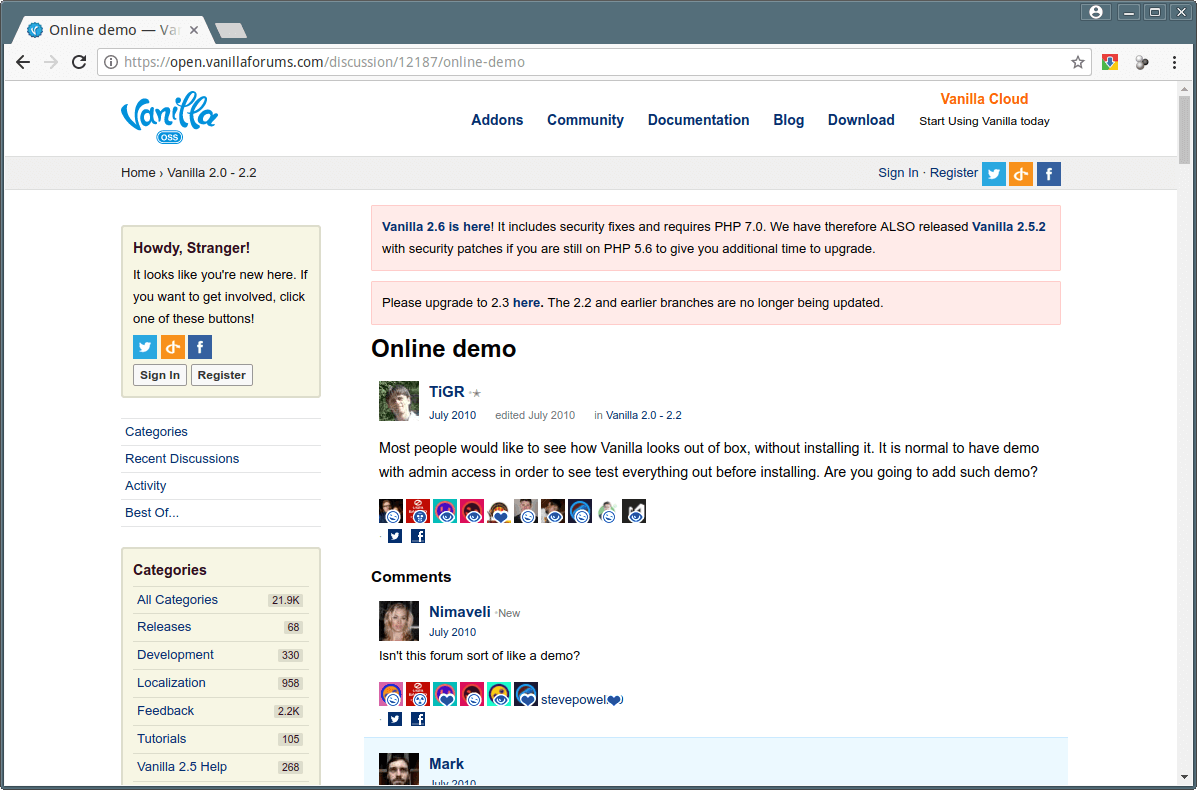 Vanilla 可以与社交网络集成,以便轻松共享、登录等。它配备了许多插件和主题来增强其主要功能并自定义其外观和感觉。