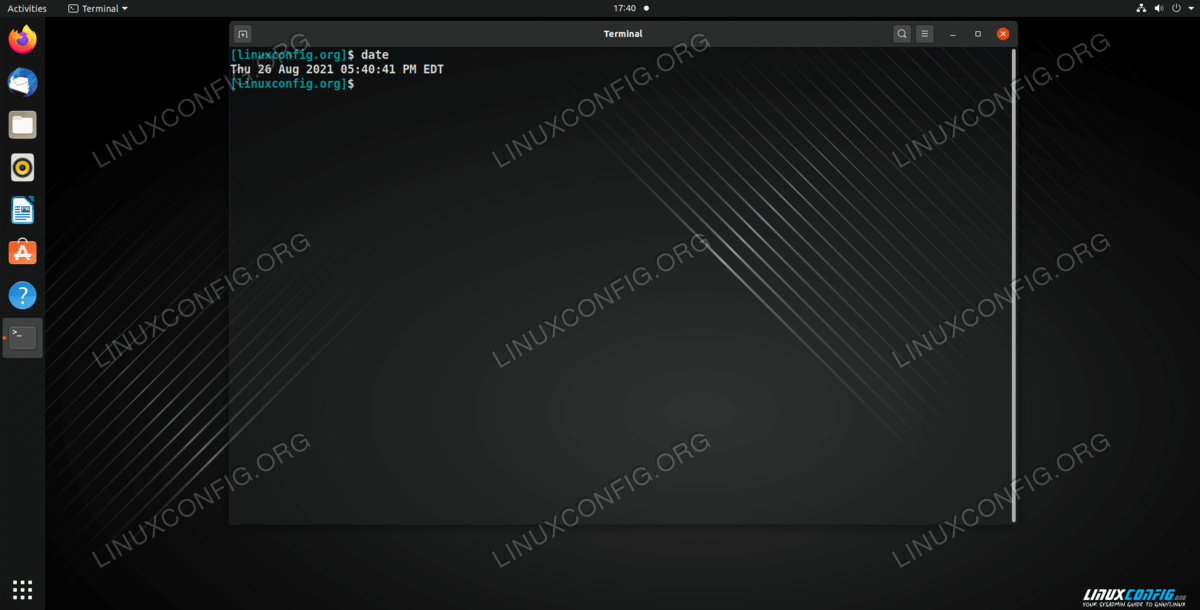 date 命令显示并设置 Linux 终端中的时间。首先,我们将在下面展示如何使用其语法来显示时间的示例。