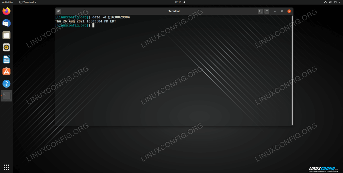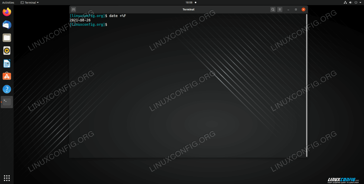 。此配置的语法与上一示例中的语法非常相似。就像我们在该示例中所做的那样,我们将在下面的 Linux 终端中展示它。$ date +%f