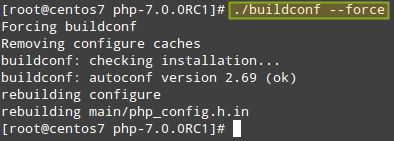 完成后,让我们进入 /opt/php-7.0.0RC1 并使用 –force 开关执行 buildconf 脚本,以强制RC版本的构建: