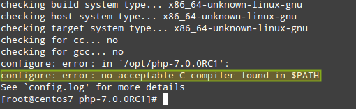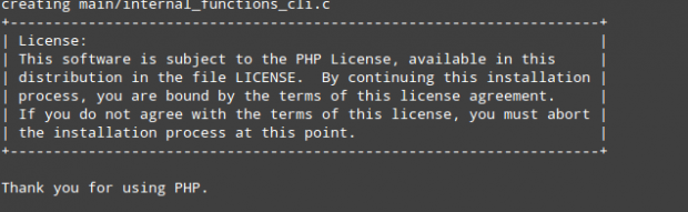 您将开始编译 PHP 7,这可能需要一段时间。如果还有其他缺少的库或资源,此过程将失败,但您始终可以安装它们并再次运行配置。