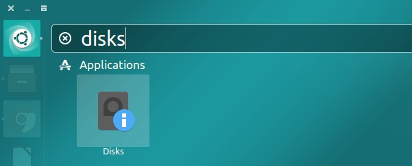 我们将在这里使用 Ubuntu 提供的磁盘实用程序。只需寻找磁盘实用程序即可。如果您使用的是 Unity 或 GNOME,只需搜索磁盘: