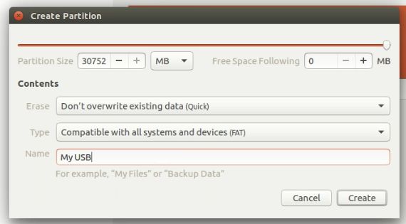 此时,您还应该在这里创建整个可用空间大小的分区。在下面的屏幕截图中,我使用了另一个 USB 磁盘。