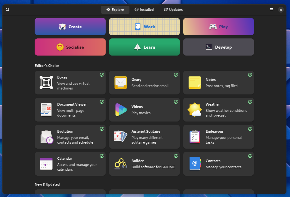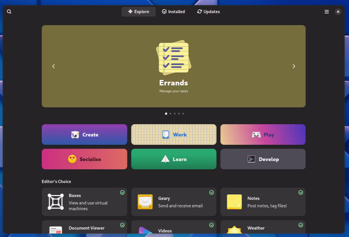• GNOME 核心应用程序已收到更新,改进了功能和性能。