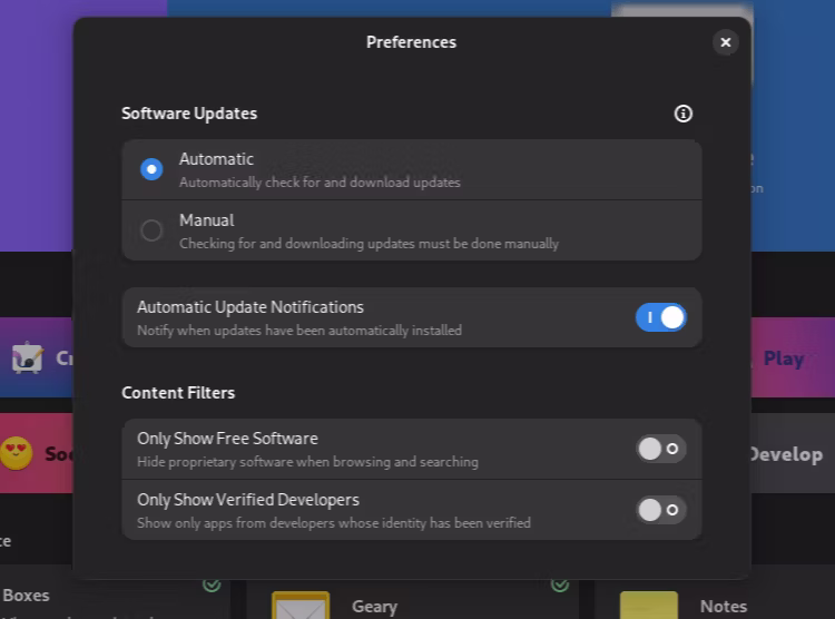 某些应用程序的图块上有绿色勾号。这些是由经过验证的开发人员创建的 Flathub 应用程序。