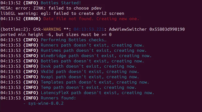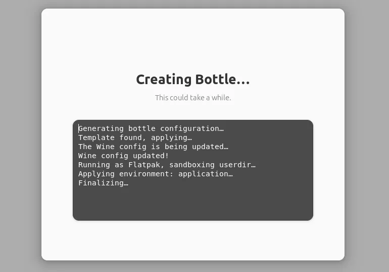 安装需要一点时间。完成后,您可以使用此命令启动 Bottles。