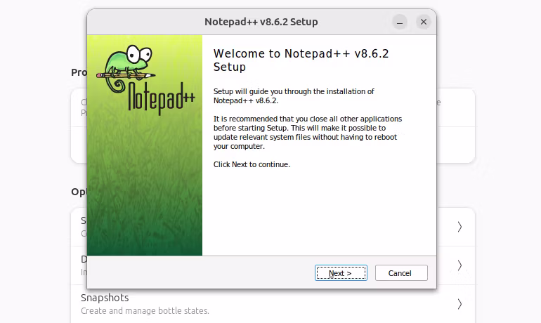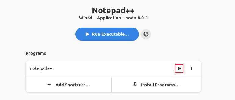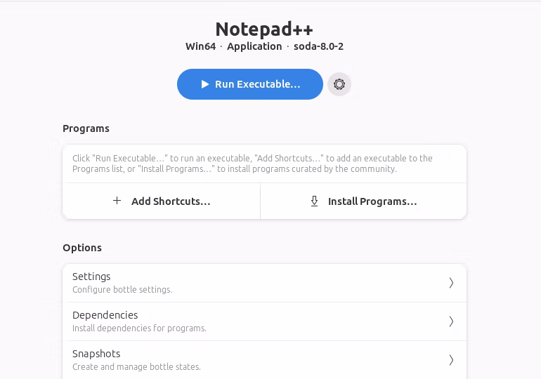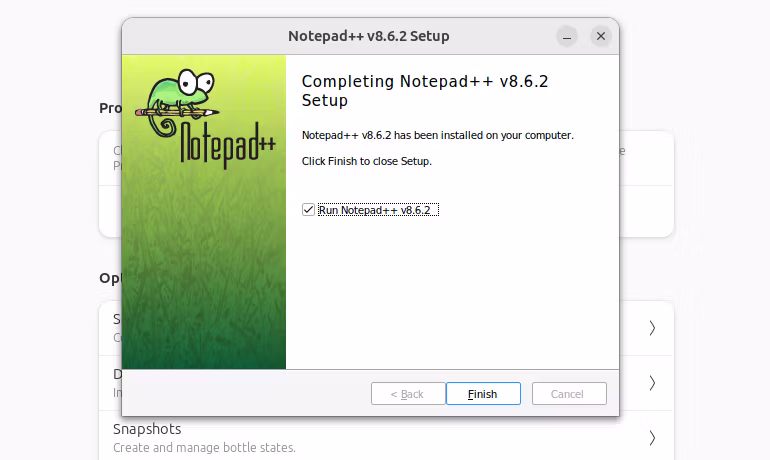 回到 Bottles,您会看到 Notepad++ 被列为已安装的程序。