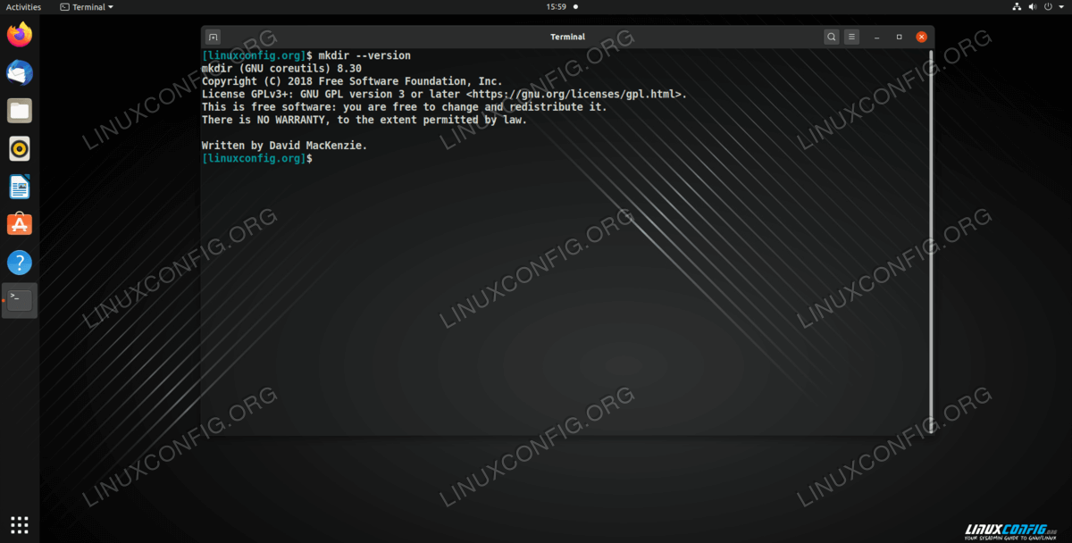 选项显示版本号和有关许可证的一些附加信息并退出。$ mkdir --version