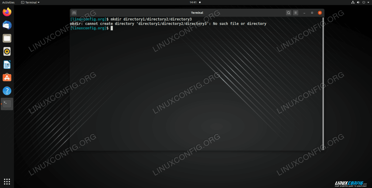 选项创建父目录。默认情况下,使用mkdir命令创建父目录将导致命令显示以下消息如果我们使用