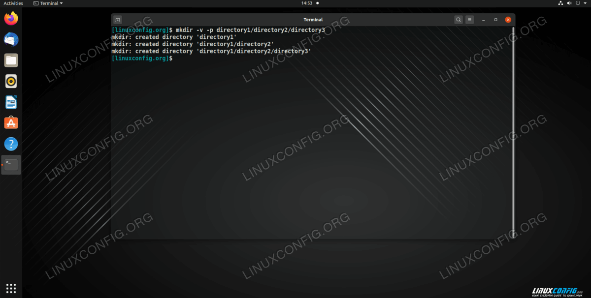 正如您在上面的屏幕截图中看到的,mkdir -v的输出创建了一个目录并告诉我们它在后台做了什么。