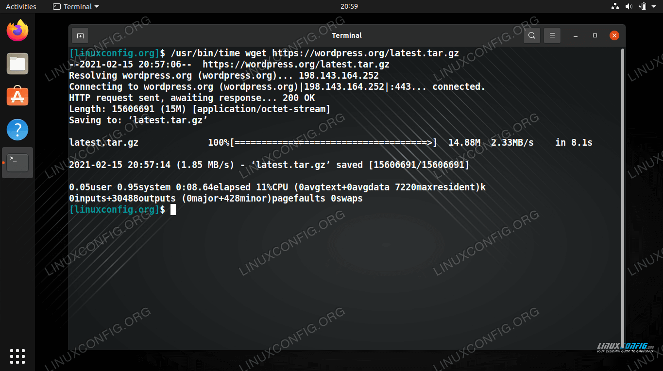 Command being timed: "wget https://wordpress.org/latest.tar.gz"