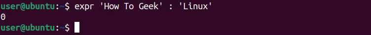 expr 提供的操作之一是比较两个字符串。为此,请在 expr 命令中使用冒号 (:) 运算符。此运算符返回两个字符串开头匹配的字符数。