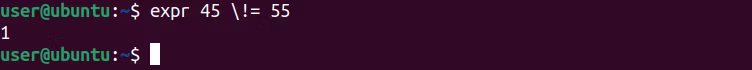 要使用 expr 命令比较两个表达式,可以使用逻辑运算符,例如 =、<、> 和 !=。如果看到命令输出 1,则条件为 true,否则为 false,并且返回值为零。