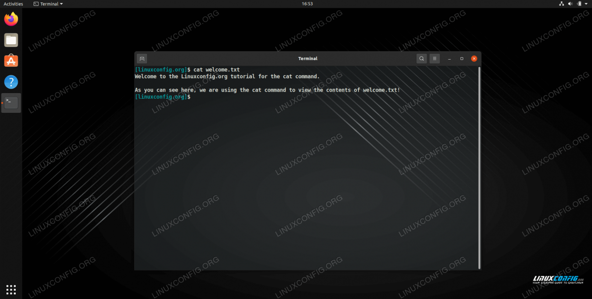 cat 命令的工作原理是连接文件并将其内容打印到标准输出。检查下面的一些示例命令以了解其工作原理。
