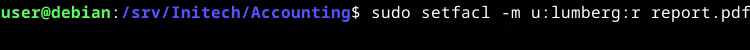 - 要为文件设置新的 ACL 条目,请使用命令“setfacl -m u:username:rwx filename”
