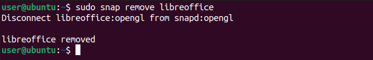 如果您使用 Snap 安装了 LibreOffice,请在终端中输入以下内容将其删除: