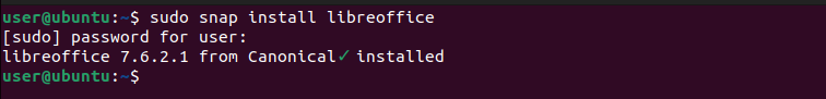 - 您还可以使用 Snap 安装 LibreOffice。在终端中运行“sudo snap install libreoffice”命令以在 Ubuntu 上安装 LibreOffice。