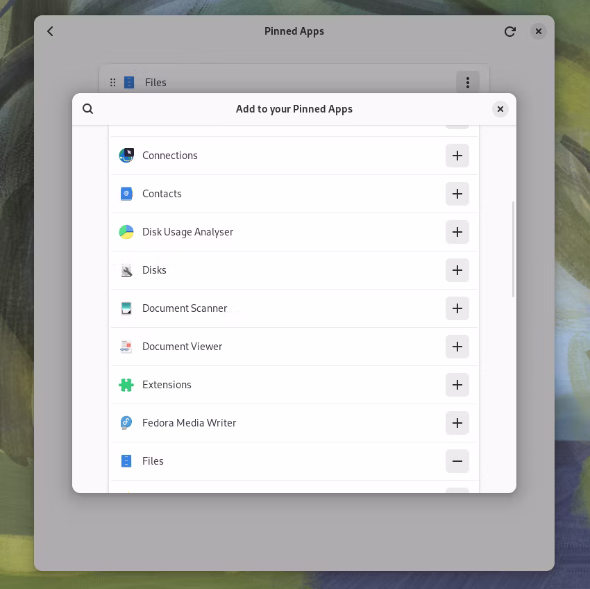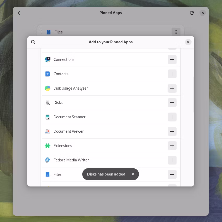 单击要添加到菜单的应用程序旁边的 + 按钮。