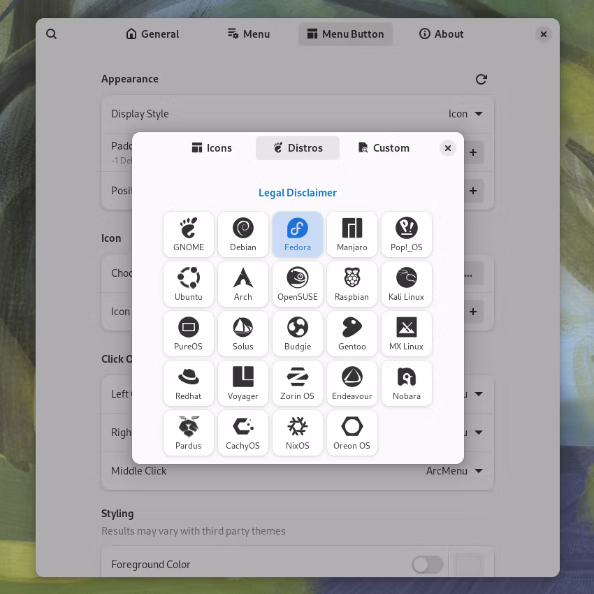 ArcMenu 扩展用可自定义的应用程序启动器菜单取代了 GNOME Workplace Indicator。