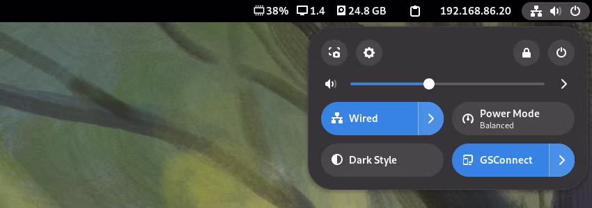 GSConnect 是我添加到物理机(但不是虚拟机)的扩展。它将我的 Android 手机连接到我的电脑。