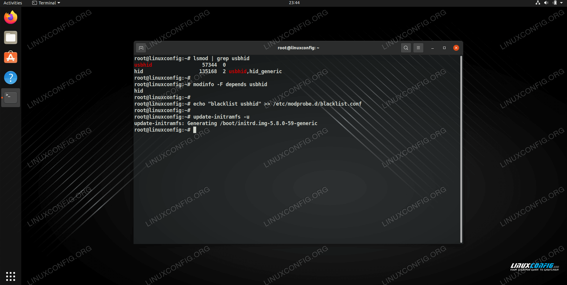 。要将没有依赖项的模块列入黑名单,我们将创建一个/etc/modprobe.d/blacklist.conf