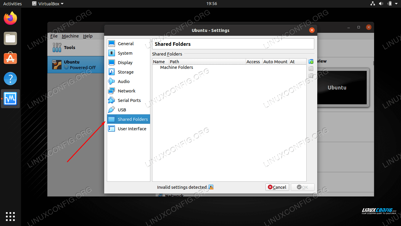 访问 VirtualBox 虚拟机设置中的共享文件夹设置
