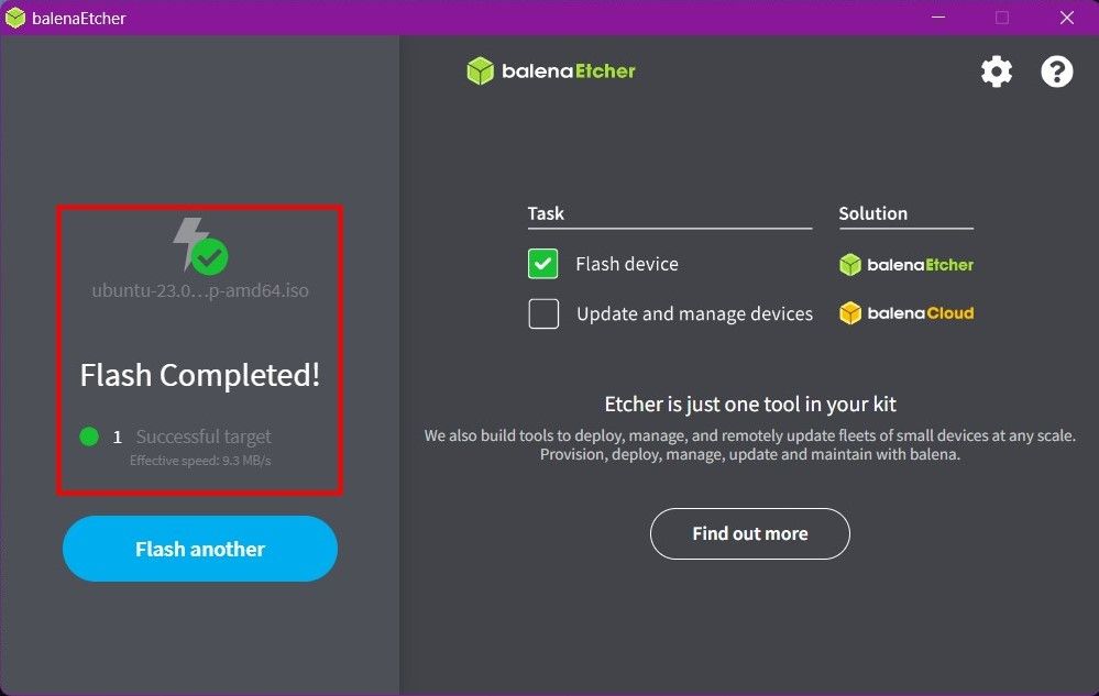 - balenaEtcher 在将 Ubuntu 安装到 USB 磁盘后运行完整性检查,因此请等待它完成后再弹出拇指驱动器。