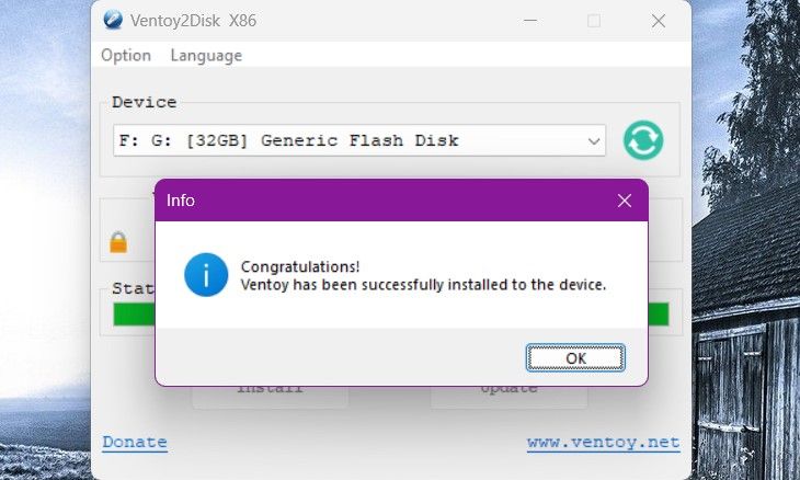 由于 Ventoy 是一个非常轻量级的工具,因此这应该需要不到一分钟的时间。然后,将在 U 盘上创建一个新分区(恰当地命名为 Ventoy)。