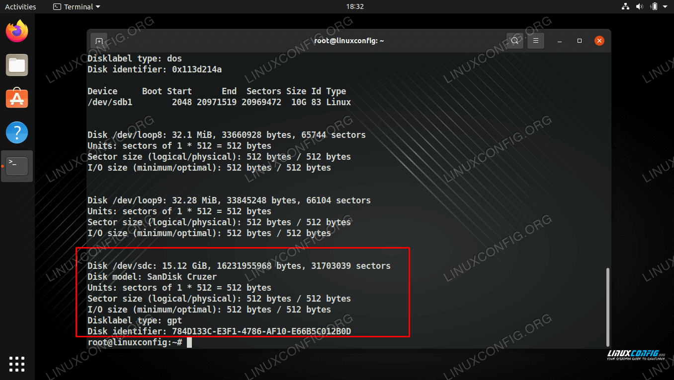 在 fdisk 输出中查找设备名称