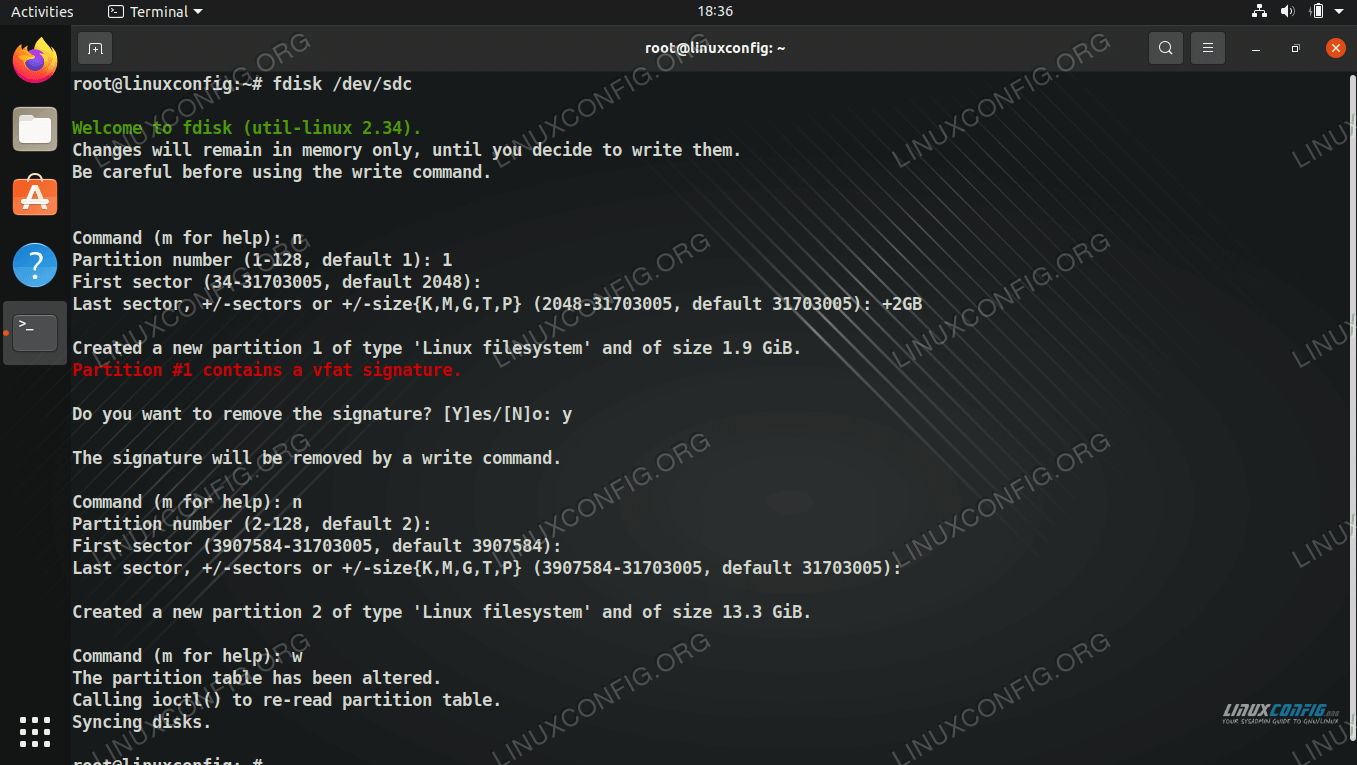 分别。使用您认为适合此目的的任何分区工具;在本文中,我们将使用fdisk