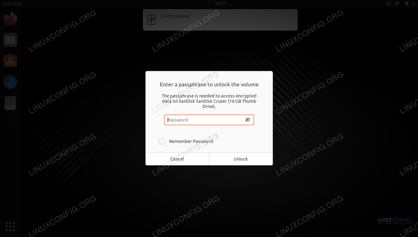 您的桌面可能会通过弹出对话框来响应加密分区,提示您输入加密分区的密码。