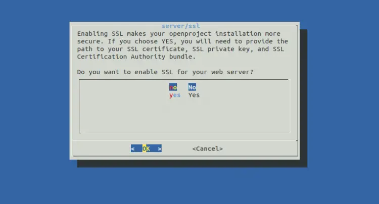 提供您的服务器路径并按Enter键。系统会要求您启用 SSL: